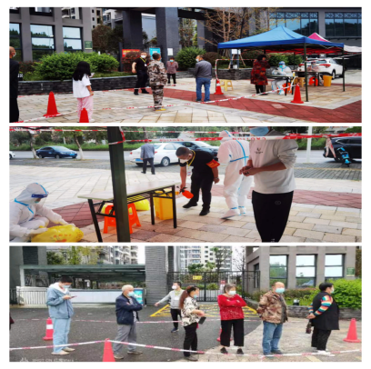 安居审计人在核酸检测现场维护秩序、消杀病毒