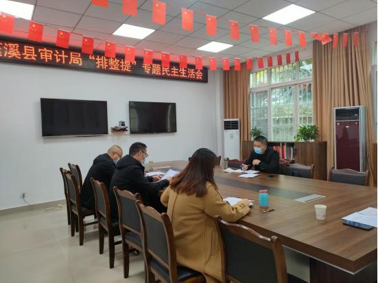 近日,蓬溪县审计局党组召开“排整提”专题民主生活会,县纪委监委派驻纪检组组长张凌霄同志莅临指导。会议由局党组书记吉波主持,党组成员刘波、廖虹参加会议。