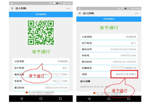 住户和家庭成员出入小区时使用微信扫码出入,如图所示:
