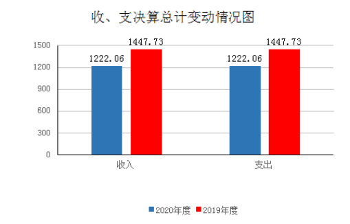 2020年度收、支总计 1222.06万元。与2019年相比,收、支总计各 减少 225.67 万元, 减少 15.59 %。主要变动原因是 项目支出减少 。