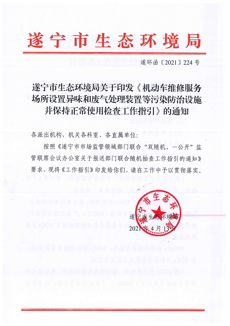 关于印发《机动车维修服务场所设置异味和废气处理装置等污染防治设施并保持正常使用检查工作指引》的通知
