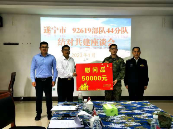为深入学习贯彻党的二十大精神,以“走海防”为主题,1月13日,市双拥办主任、市退役军人局局长唐思伦带队,到结对共建单位92619部队44分队开展走访慰问活动。慰问组详细了解部队战备训练情况,实地察看了部队营房、临时来队家属房、蓄水池、文化阵地等,向部队发放慰问品,并致以新春佳节的祝福。