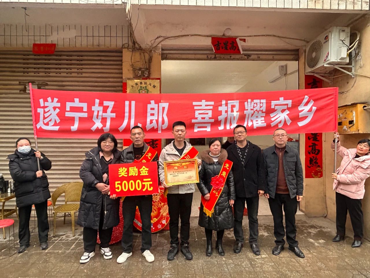 喜报传乡梓,荣耀满故乡。2月7日,县人武部、县退役军人事务局、回马镇共同为荣立二等功现役军人钱伟家庭送去喜报“二等功臣之家”牌匾,用满满的仪式感彰显尊崇与荣光。2月13日,县退役军人事务局、回马镇组成喜报团,为在2024年度工作中成绩突出,荣立三等功现役军人郭刚家庭送去喜报和慰问金,营造拥军优属的良好氛围。两次“送功”仪式不仅彰显了对现役军人及其家庭的崇高敬意与深切关怀,更在回马的土地上播撒下崇尚英雄、热爱国防的种子,激励着更多热血青年以实际行动报效祖国,为家乡书写更多的辉煌与荣耀。