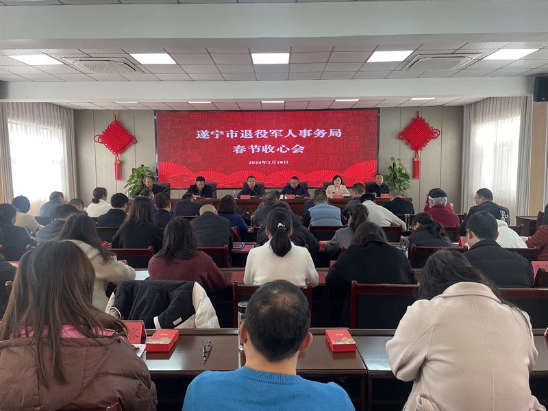 唐思伦强调,春节前及春节期间,我局组织了对驻遂部队慰问,走访了优秀、一线和困难等类型的退役军人或其他优抚对象,举办了军休干部等退役军人群体的新春座谈会,全市退役军人各项工作顺利推进、创新开展、平安实施。