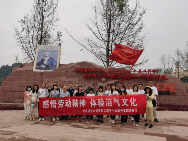 2022年5月24日,遂宁市退役军人服务中心联合党支部组织全体党员到遂宁市中共党史学习教育基地、遂宁市乡村振兴重点项目“海龙凯歌”农旅园区开展以“感悟劳动精神 体验沼气文化”为主题的党日活动。