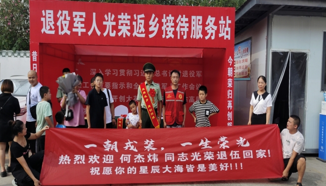 营造氛围,军民团结“一家亲”。在全市交通要道、企业单位悬挂欢迎横幅和迎接标语营造良好氛围。安排工作人员在火车站等交通枢纽设置返乡接待服务站,为退役军人佩戴胸花和绶带,发放“两卡两手册”,提供政策宣传、信息咨询、法律普及、后勤保障,设置专属打卡点为退役军人及家人提供打卡拍照等贴心服务,让每一位退役军人一到站就感受到来自家乡退役军人事务部门的温暖和周到。