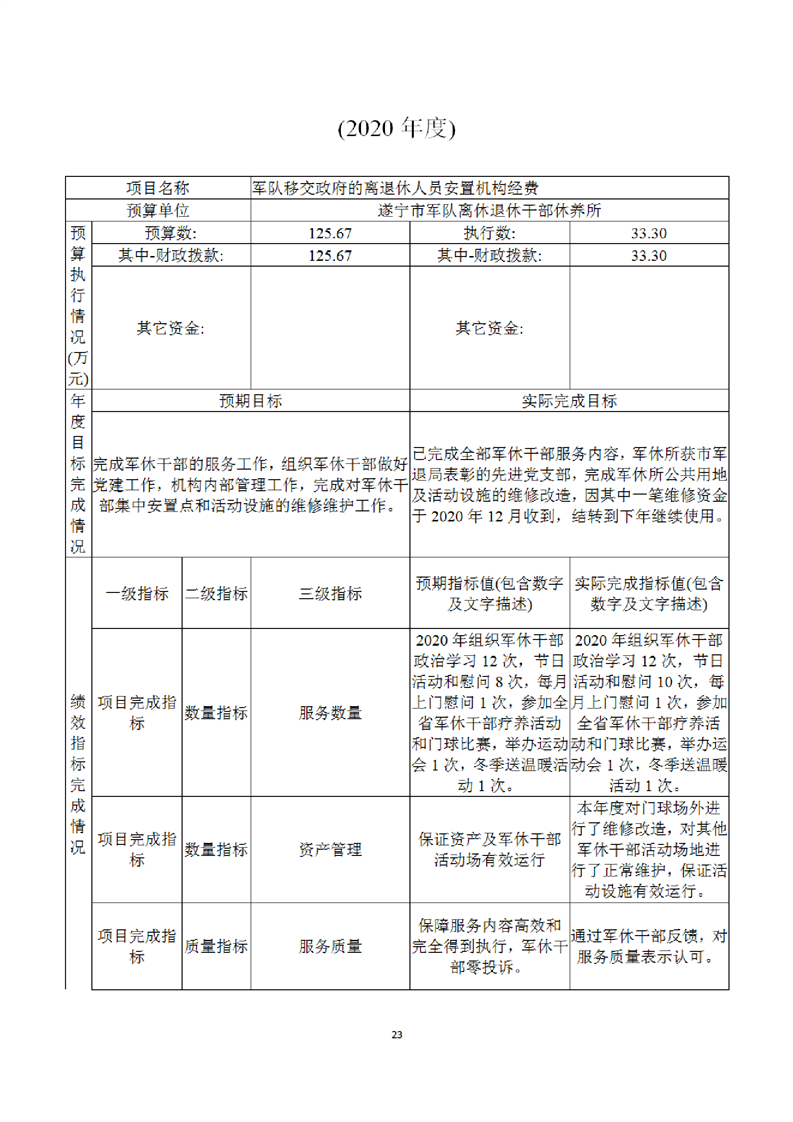 2020年度遂宁市军队离休退休干部休养所部门决算