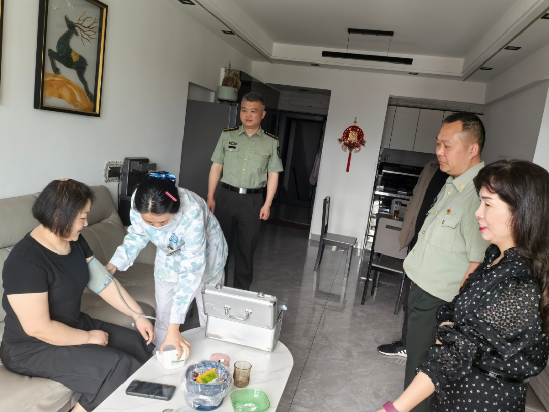 在解决就业难题的同时,慈音街道还联动慈音社区卫生服务中心同步开展“健康敲门行动”。组建由全科医生、康复治疗师组成的医疗小分队,为辖区现役军属家庭建立健康档案,提供血压血糖监测、康复理疗等上门服务。针对患有慢性病的军属,制定个性化健康管理方案,定期开展用药指导和饮食干预。