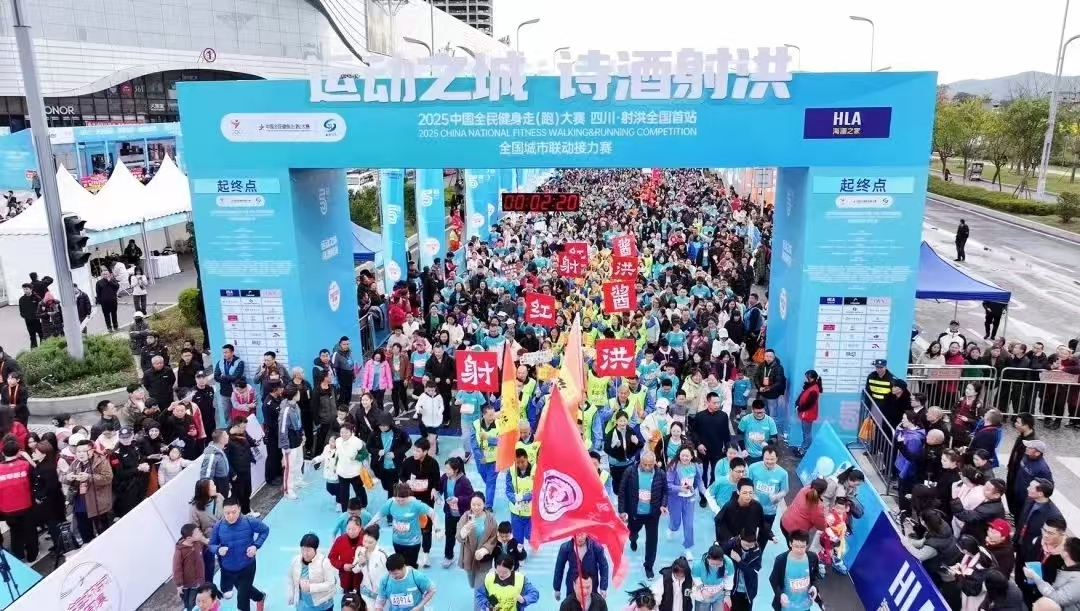 中国全民健身走(跑)大赛是国家体育总局社体中心创办的国家级赛事。本次赛事活动集结了四川、重庆、湖南、河南、安徽、上海、内蒙古等城市联动,促进城市之间跨区域体育文化交流、办赛经验分享、“文体旅”融合发展。射洪作为该赛事连续五届的首站举办地、文旅体联盟首任轮值主席,累计吸引5万余人“奔跑而来”,连续3届获评全国群众体育先进单位,掀起了全民健身热潮,赛事品牌影响力彰显,成为全国“小城办大赛”的典范。