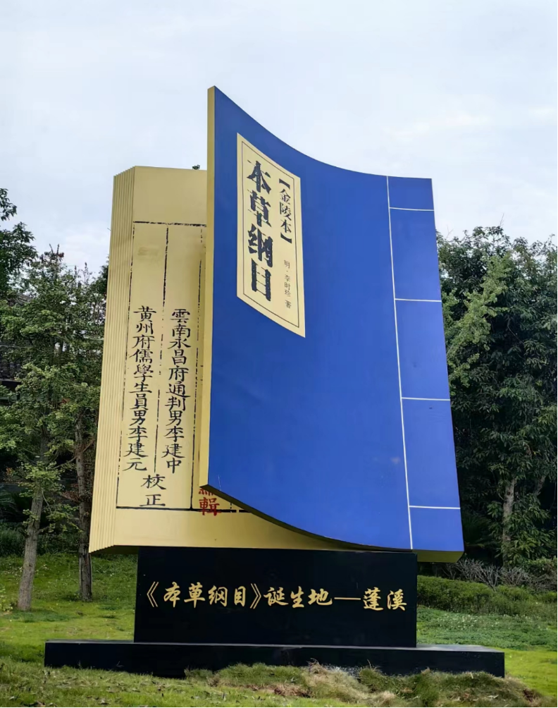 ▲《本草纲目》诞生地——蓬溪(雕塑)《李时珍与蓬溪》一书,共计10万字,分研究文存、史料选编和文献图录三部分,考证了李时珍与蓬溪的关系;论证了蓬溪县是《本草纲目》成书地;考述了李时珍敕封四川蓬溪知县、蓬溪本草传承名老中医等。本书出版,为蓬溪深入挖掘本草文化内涵,整合全县旅游资源,全力打造“全域百草园”,