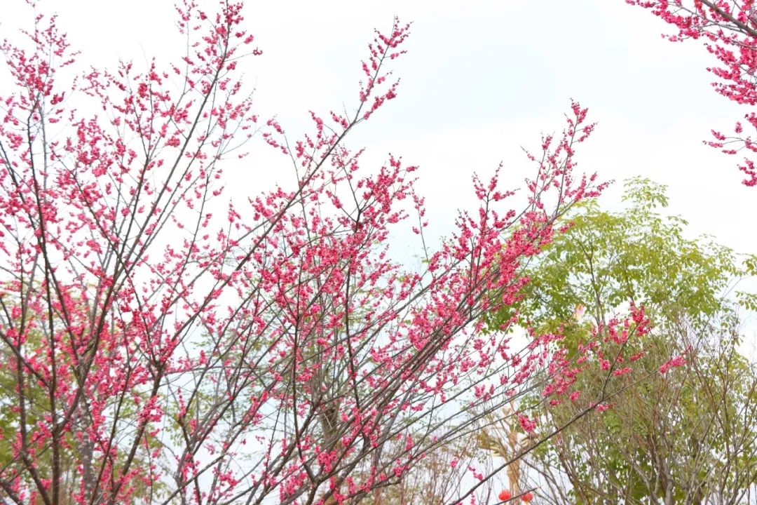 在市环岛中心广场,盛开的红梅娇艳花色、袅袅梅香,微风拂过,萦绕心间。成片的梅海吸引众多市民、游客前来拍照打卡,将这份美好永久定格。