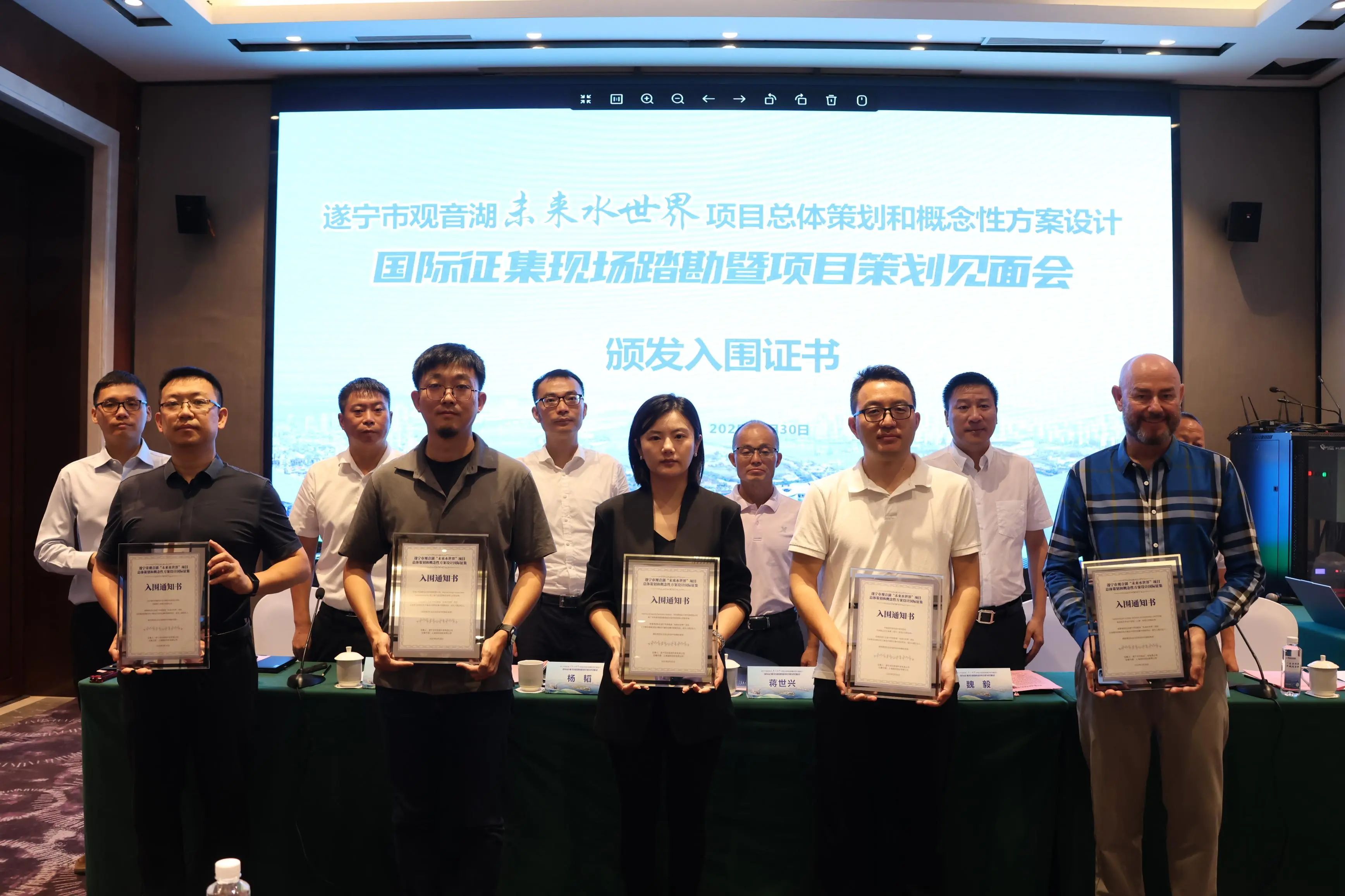 国际征集现场踏勘暨项目策划见面会上,市委宣传部副部长,市文化广电体育旅游局党组书记、局长魏毅介绍了项目策划建议书及项目总体构想;遂宁文体旅集团党委书记、董事长唐钰玺以文体旅产业项目落地为主旨,介绍了项目设计要求和定位思路。参会领导二级巡视员蒋世兴等为5家入围团队,颁发了入围通知书。