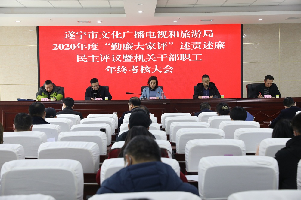 1月26日,2020年度遂宁市文化广电旅游局“勤廉大家评”述责述廉民主评议会议召开。会上,除局领导班子成员向局党组书记和驻局纪检组组长述党风廉政“一岗双责”外,17名机关内设科室和局直属单位主要负责人向驻局纪检监检组进行大会现场或书面述责述廉,重点从个人履职尽责、落实党风廉政建设“一岗双责”、廉洁从政等方面进行了汇报。同时,5名机关科室和局属单位负责人接受了市人大代表、市政协委员以及管理服务对象的提问质询。