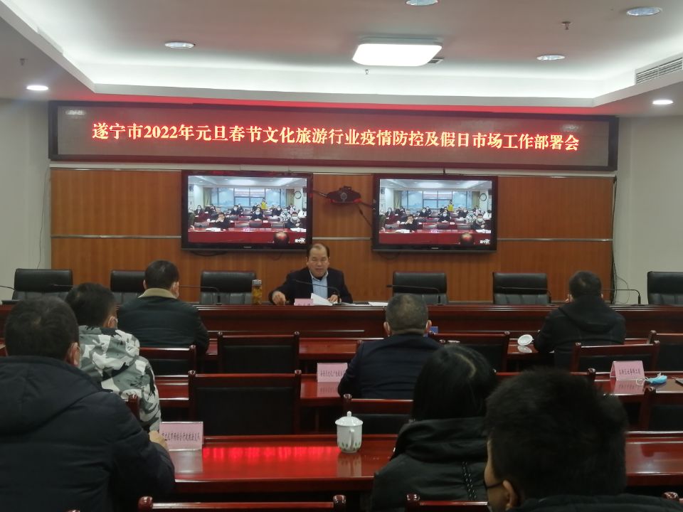 12月27日,我局召开了2022年元旦春节疫情防控、安全生产和假日市场工作部署会。会议传达了全国全省2022年元旦春节疫情防控及假日市场工作电视电话会议精神,组织学习了《四川省新冠肺炎疫情防控工作指南(第五版)的通知》《四川省重大活动新冠肺炎疫情防控保障指南的通知》有关文件,贯彻落实省文旅厅关于做好2022年元旦假日期间全省文化和旅游假日市场有关工作要求,部署安排2022年元旦、春节期间疫情防控、安全生产和假日市场工作。各县(市、区)、市直园区文化广电旅游行政部门主要负责人、局属各单位、局相关科室负责人、部分文旅企事业单位等60余人参加会议,市文化广电旅游局局党组成员、副局长向永德出席会议并讲话。