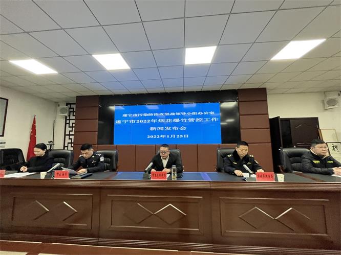 1月25日上午,遂宁市2022年烟花爆竹管控新闻发布会在市生态环境局举行。会议解读了《遂宁市人民政府关于遂宁市市城区及周边区域禁止燃放烟花爆竹的通告》,市生态环境局、市城管执法局、市公安局、市应急局分别就烟花爆竹禁燃禁放管控工作情况进行了通报。
