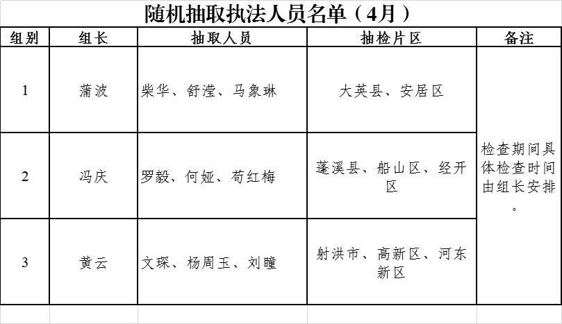 遂宁市文化市场综合行政执法支队2021年4月双随机抽查随机抽取经营单位及检查情况