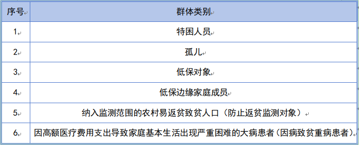 医疗救助公平覆盖医疗费用负担较重的困难群体,我市救助对象共有6类人群: