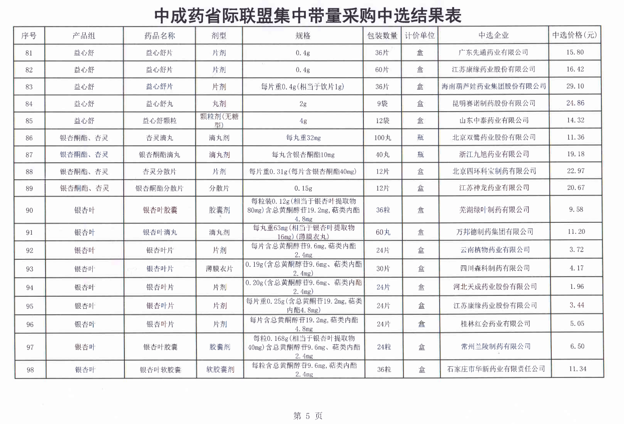 本次中成药集采涵盖17个产品组,共111个产品中选,中选品种多为临床用量大、采购金额高的品种,如血塞通、血栓通、康复新液等均为中成药常用品种,中选药品价格平均降幅42.27%,降幅最高的银杏叶(30片/盒)由24元/盒降至4.17元/盒,降幅达82.63%,大幅减轻患者用药负担。此次中成药集采,临床使用的主流产品和新冠肺炎诊疗方案推荐用药大多中选,可有效满足临床和常态化疫情防控用药需求。