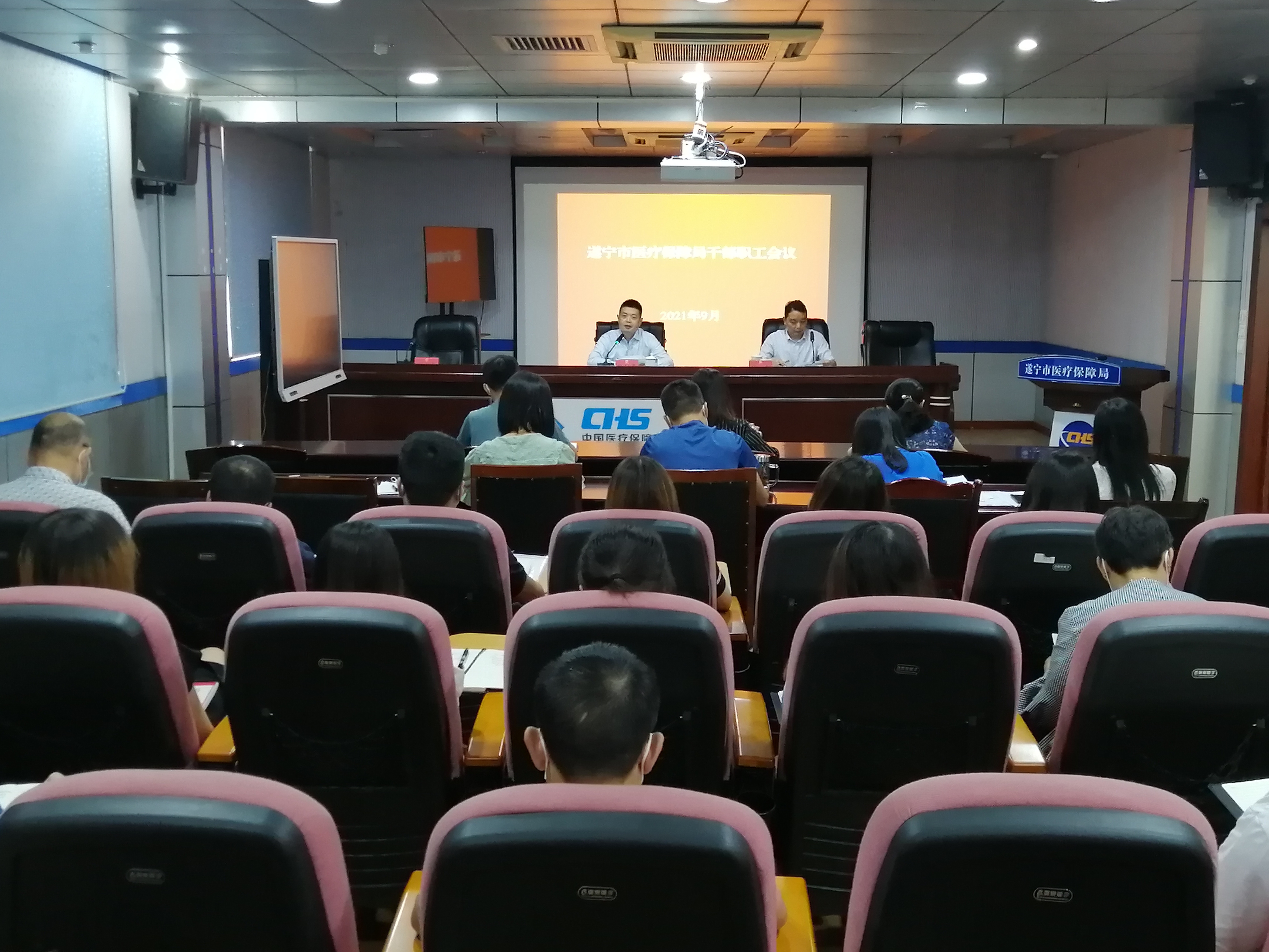 9月30日,市医保局召开节前干部职工会议,对“问题大排查、作风大整治、工作大提升”专项行动进行再动员、再部署。市医保局党组书记、局长张智勇同志主持会议并讲话,局党组成员、副局长周筠,局党组成员、市医保中心主任徐杰和在家全体干部职工参加会议。