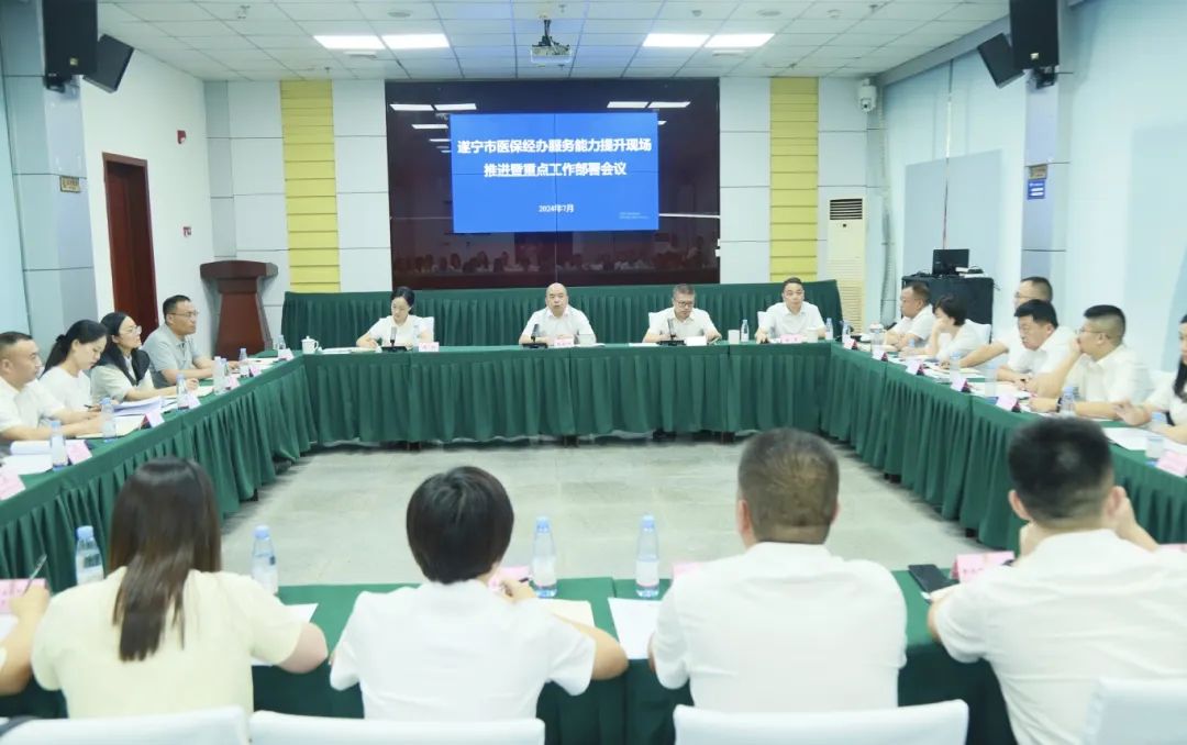 7月16日,遂宁市医疗保障局召开全市医保经办服务能力提升现场推进暨重点工作部署会议。