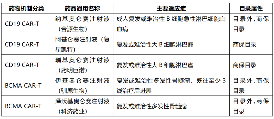 表:进入2025国谈创新药初审目录的5款CAR-T产品