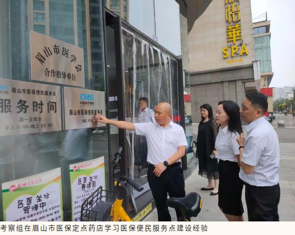 考察组实地考察了眉山市中医医院、东坡区医保政务服务大厅、医保定点药店,现场学习了医保服务工作站、慢病管理中心、医保便民服务点建设等。同眉山市医保局开展了座谈交流,深入探讨了参保征收、基金监管、医保经办服务、慢病管理、医保电子凭证推广等方面的成功经验。赵全江表示,眉山市坚持法治和服务理念,参保工作办法多,经办服务有温度,基金监管有力度,工作理念和经验做法值得进一步学习借鉴。双方表示,今后将进一步加强沟通交流,对好的经验做法相互借鉴推广,共同努力,不断提升人民群众的获得感、幸福感、安全感。
