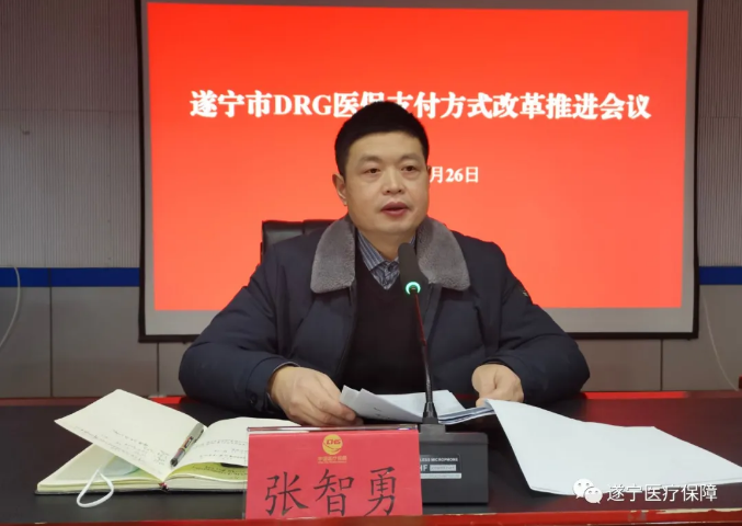 为深入贯彻落实《中共中央国务院关于深化医疗保障制度改革的意见》(中发〔2020〕5号)精神,大力提高遂宁市医保支付精准化、科学化水平,2022年1月26日,市医保局召开全市深化DRG医保支付方式改革推进会议。市医保局党组书记、局长张智勇主持会议。市医保局党组成员、副局长苏荣,市医保局党组成员、市医保中心主任徐杰,市医保局及市医保中心相关科室人员,各县(市、区)医保局局长、分管副局长、医保中心主任以及相关股室人员参加会议。
