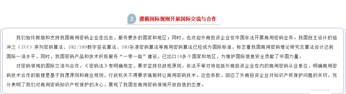按照党管密码原则和简政放权的要求,密码法在商用密码科技创新、产业发展、人才培养、教育培训、标准化、检测认证、密码应用、进出口、电子认证、行业自律、监督管理等方面作出相应规定。