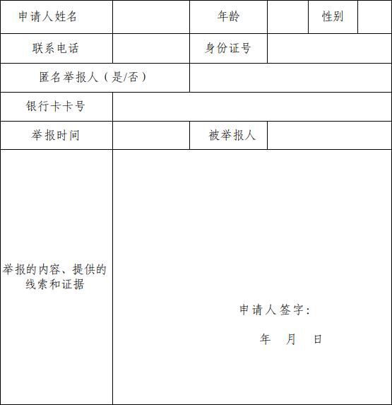 举报违法违规使用医疗保障基金行为奖励申请表