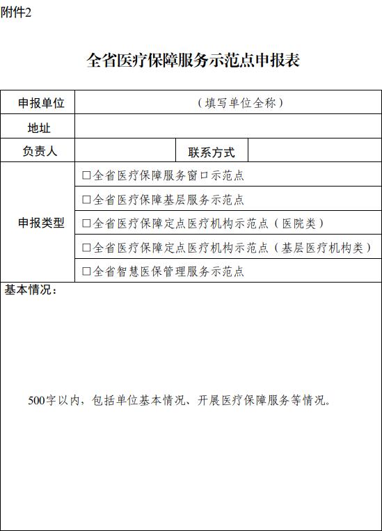3.市医保局审核后,将《全省医疗保障服务示范点申报表》报省医保局申请组织现场验收。
