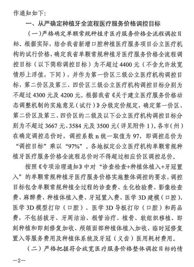 一、严格确定我市种植牙全流程医疗服务价格调控目标