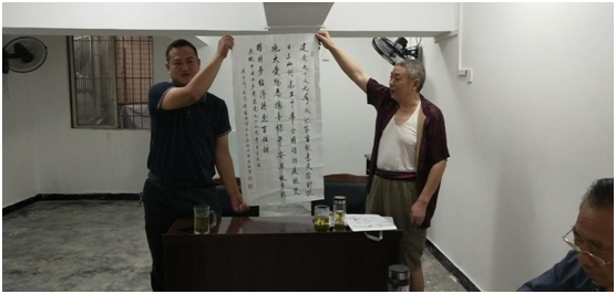 为隆重庆祝党的99岁生日和退休党支部活动室成立,该局退休支部书记饶友富同志特地书写3幅字和1副楹联,并在课间为退休党员展示了其中一幅,"建党九十又九年,永记苍生就是天。除封抗日三山倒,建立中华全国谐。防疫救灾施大爱,惩恶扬善保平安。革故鼎新圆国梦,经济腾飞百姓甜"。饶友富同志用实际生活中的例子为大家诠释了"四个自信"、如何自信,并就共产党员如何坚持"四个自信"树立了很好的榜样。