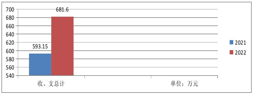 2022年度收、支总计681.6万元。与2021年相比,收、支总计各增加88.45万元,增长14.91%。主要变动原因是2022年清算2021年目标奖及发放2022年月度绩效工资。