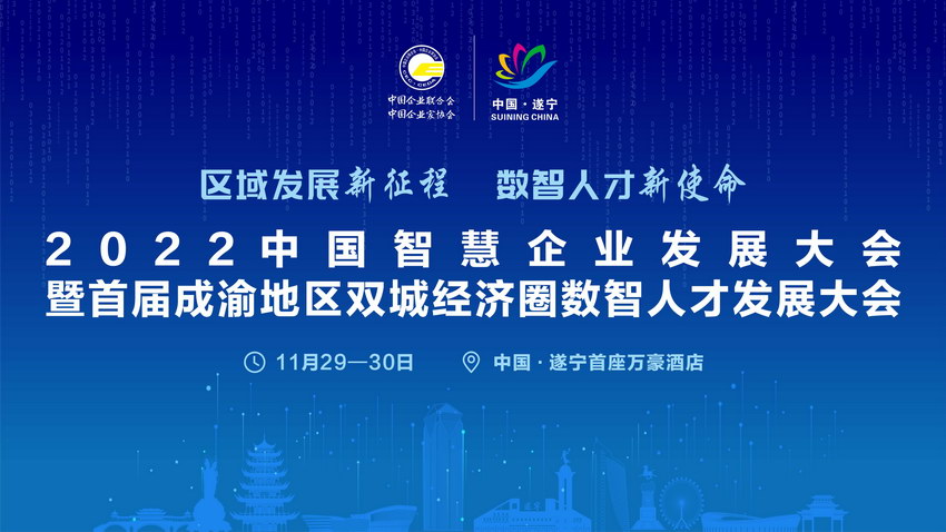 2022中国智慧企业发展大会暨首届成渝地区双城经济圈数智人才发展大会将于11月29—30日在我市召开。此次大会以“区域发展新征程 数智人才新使命”为主题,旨在贯彻落实党的二十大关于加快数字中国、人才强国建设的战略部署,大力实施“数字三城”建设,加速升腾“成渝之星”。