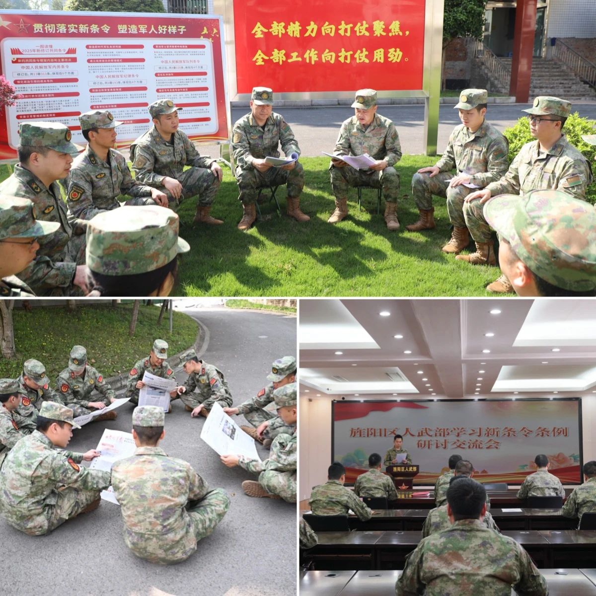 各单位积极构建全方位宣传矩阵,多渠道、多途径推送新条令全文、权威解读等相关知识,第一时间更新展板、LED屏内容,在营区营造浓厚氛围。▲广元市朝天区/自贡市沿滩区/什邡市/隆昌市/资中县/叙永县人武部此外,各单位依托中国军号、军职在线等线上载体进行“云端”学习,通过微课自学、线上答题等方式深化理解,实现全时可学、全员覆盖。各单位组织结对共学和微课堂交流研讨,在精研细学中全面掌握新条令基本内容和精神实质,在思想碰撞中深化官兵对新条令的理解与运用,推动条令入脑入心。▲德阳市旌阳区/沐川县/富顺县人武部组织新条令讨论交流“男军人帽墙下发长不得超过多少厘米?”“进入办公场所的着装要求是什么”......各级紧扣“新条令”中的日常管理、队列规范等重点内容,通过现场竞答、研讨交流等方式激发学习热情,巩固学习成效。学习是前提,贯彻是关键。省军区各级严格按照新条令要求,一体推进“学、训、考、用”,不断推动部队建设管理向更高水平发展。各单位坚持学用结合,将新条令融入战备、训练、工作、生活全过程,持续抓好新条令贯彻落实,不断强化全体人员行为自觉。▲成都警备区/达州军分区/南充市顺庆区/开江县/金阳县人武部开展队列训练各单位常态化开展军容风纪检查,细致落实规范要求;坚持以考促学、以学促训,推动作风养成,助力单位正规化建设。▲泸定县/青神县/石渠县/华蓥市/松潘县/夹江县人武部抓养成、树形象、立军威需要久久为功。省军区各级将持续深化新条例学习成效,引导官兵自觉将条令条例内化于心、外化于行。