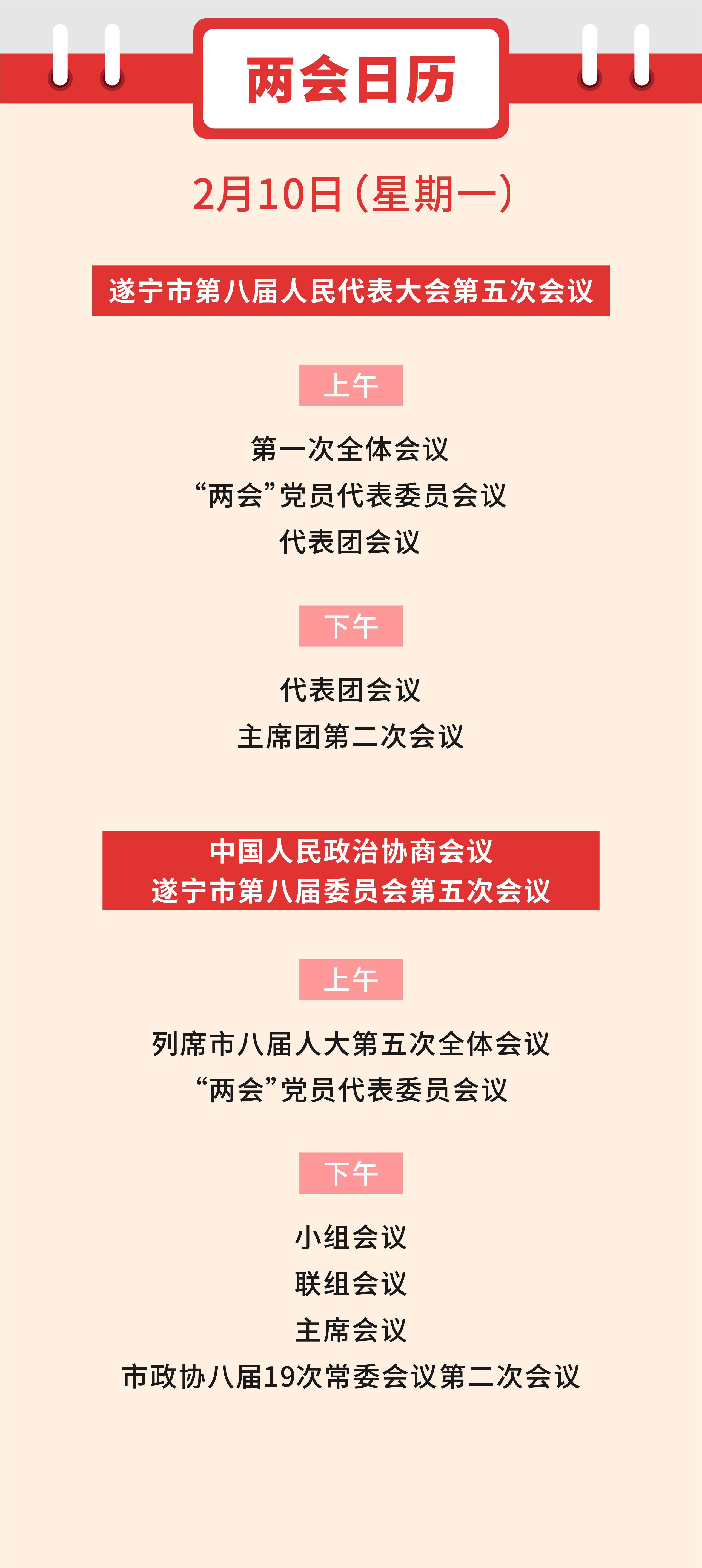 上午:遂宁市第八届人民代表大会第五次会议第一次全体会议(开幕会)、两会党员代表委员会议、代表团会议