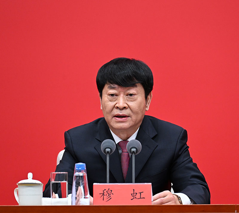 10月24日上午,中共中央举行新闻发布会,介绍解读党的二十大报告。中央政法委秘书长陈一新,中央政策研究室主任江金权,中央改革办分管日常工作的副主任、国家发展改革委副主任穆虹,中央纪委国家监委宣传部部长王建新,中央办公厅副主任兼调研室主任唐方裕,中央宣传部副部长孙业礼等有关方面负责人解读党的二十大报告并回答记者关心的问题。这是穆虹在新闻发布会上。
