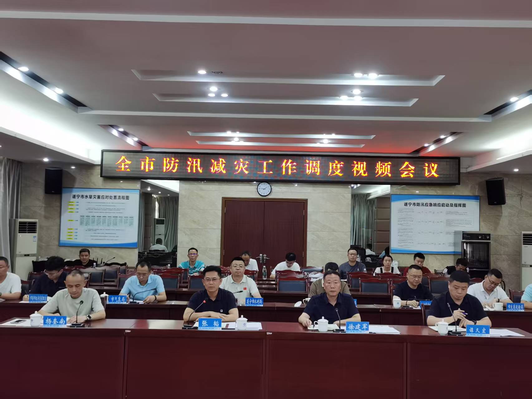 会上,市气象局、市水利局通报了近期天气、水情情况,市水利局、市自然资源和规划局、市应急管理局分别就防汛、地灾防治、救灾救援工作进行安排部署。市住房城乡建设局、市交通运输局、市文化广电体育旅游局、遂宁水文中心、市委市政府总值班室相关负责同志及各县(市、区)政府、市直园区管委会分管防汛、地灾防治工作的负责同志参加会议。