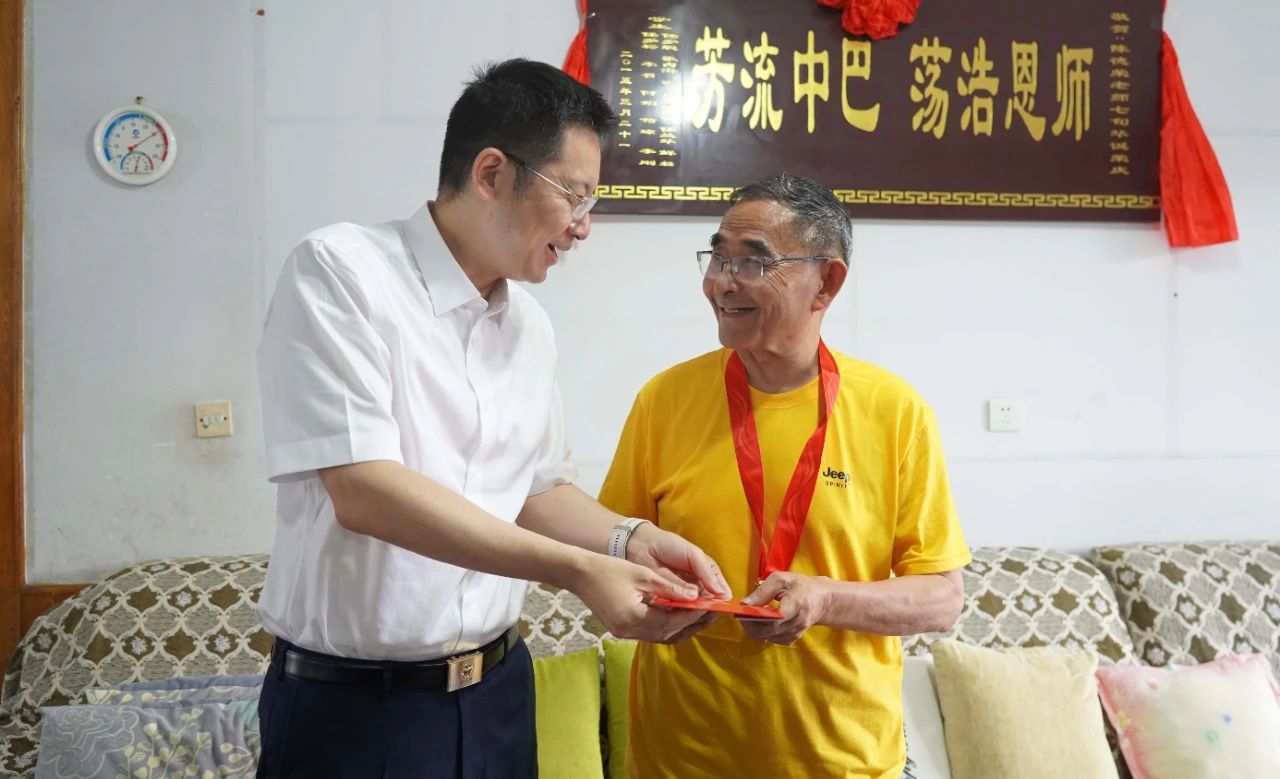 今年79岁的陈德荣是有着50年党龄的老党员。在陈德荣家中,谭晓政同志详细了解他的家庭生活、身体健康等情况,为他颁发和佩戴“光荣在党50年”纪念章,感谢他为射洪教育事业作出的贡献,希望他在保重身体、安享晚年的同时,继续发挥余热,为射洪教育高质量发展贡献力量。在老党员文纯宝家中,谭晓政同志与他唠家常、话发展、问需求,感谢他为射洪文化发展作出的贡献,希望他永葆共产党员政治本色,持续发光发热,一如既往地关心和支持射洪各项事业发展。老党员龚兴华曾在部队多次受到表彰,退役后仍然积极投身基层党组织建设与社区服务工作。谭晓政同志与他亲切交谈,认真聆听其对射洪经济社会发展的意见和建议,并现场要求相关部门严格落实各项优抚政策,持续优化退役军人就业创业服务体系,有针对性地开展职业技能培训与就业指导,切实提升退役军人就业竞争力。