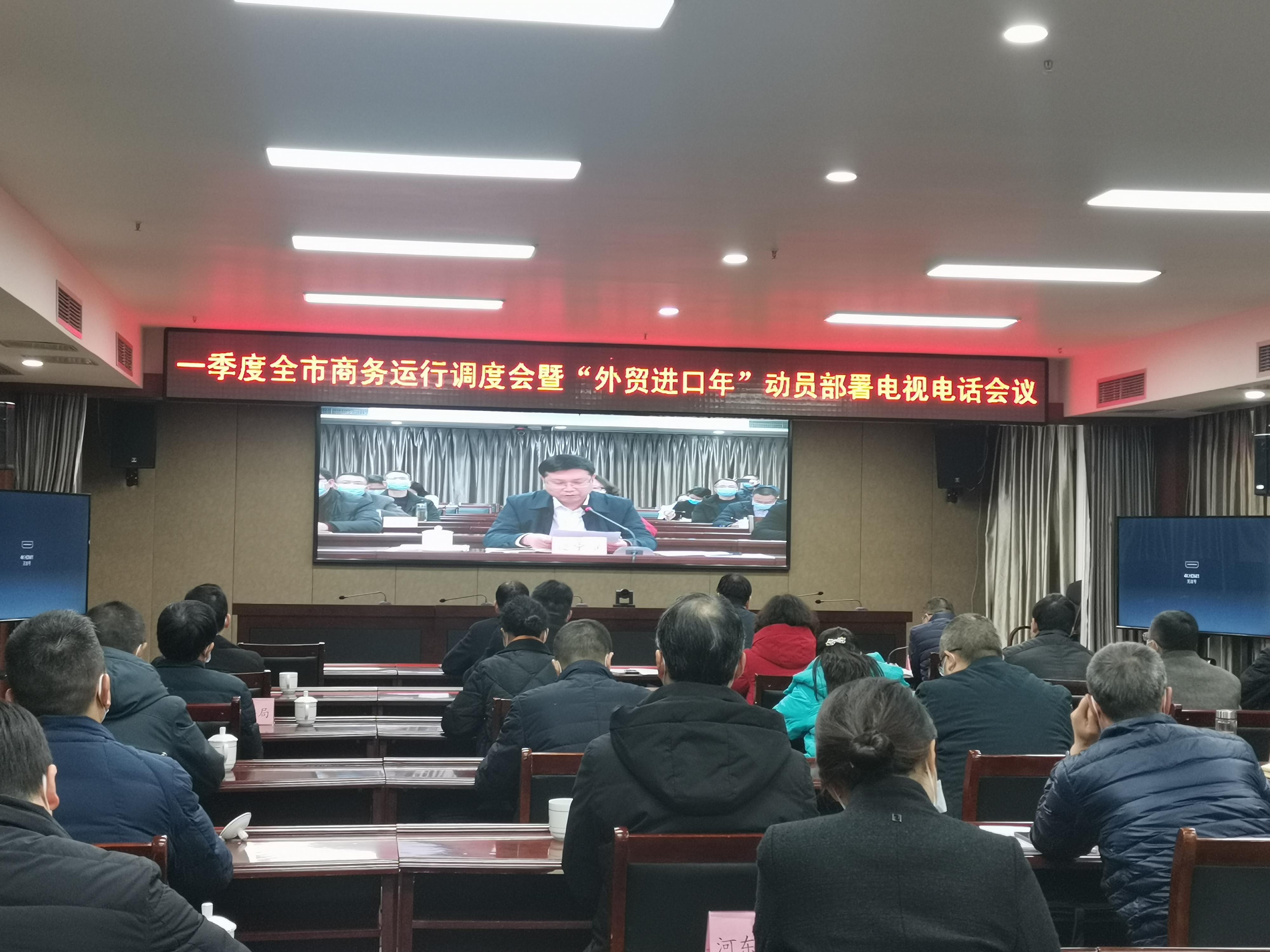 1月4日, 张智勇副市长在市政府3号楼9楼会议室主持召开全市2022年一季度商务运行调度暨“外贸进口年”动员部署电视电话会议,市级各部门,各县(市、区)、园区商务主管部门相关负责人参加会议。会议贯彻落实省委、市委经济工作会议精神,认真分析全市商务工作面临形势,分解下达各县(市、区)“三项指标”任务,安排部署“外贸进口年”相关工作,确保全市商务运行开好局、起好步。