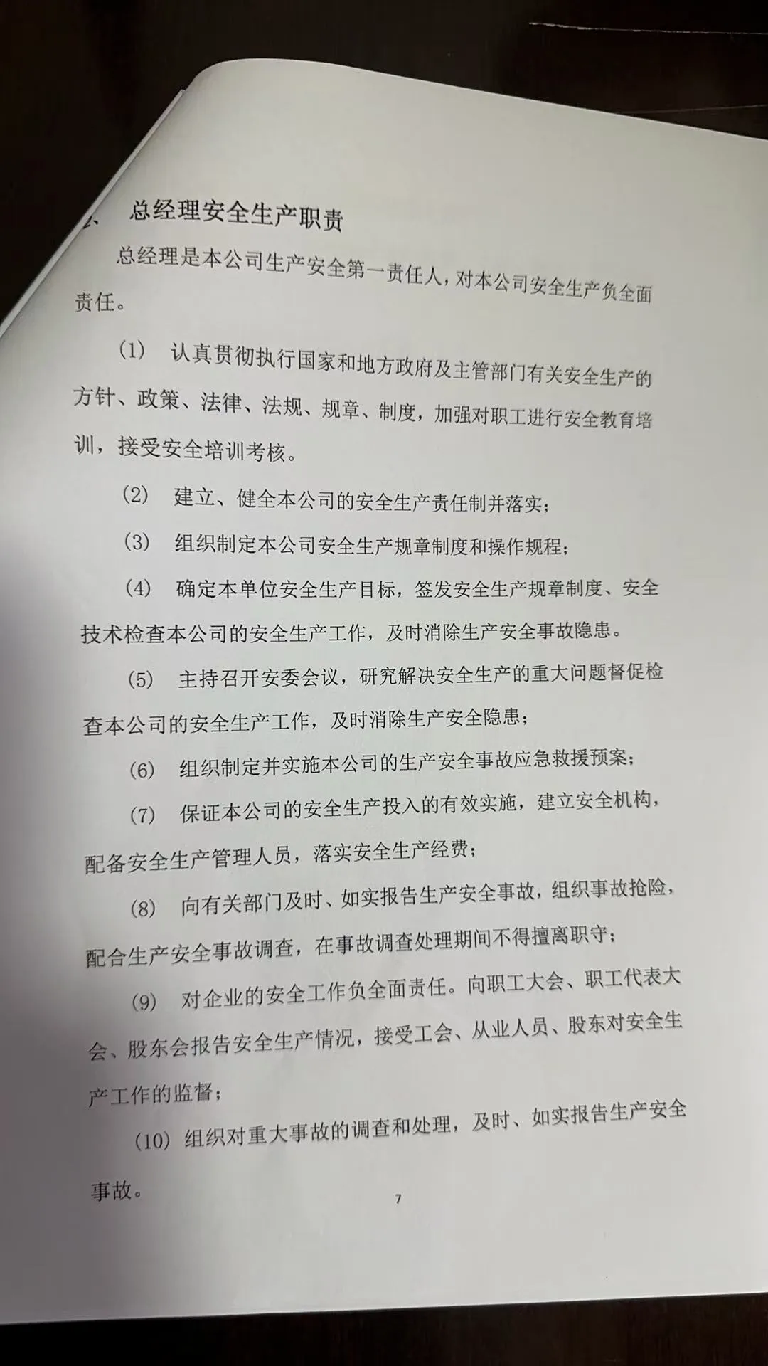 按照新修订的法律法规要求完善主要负责人安全职责。