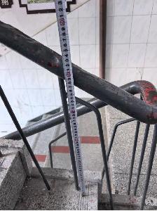 育英楼2、3楼楼梯扶手高度约50cm,高度不达标(重大事故隐患)。