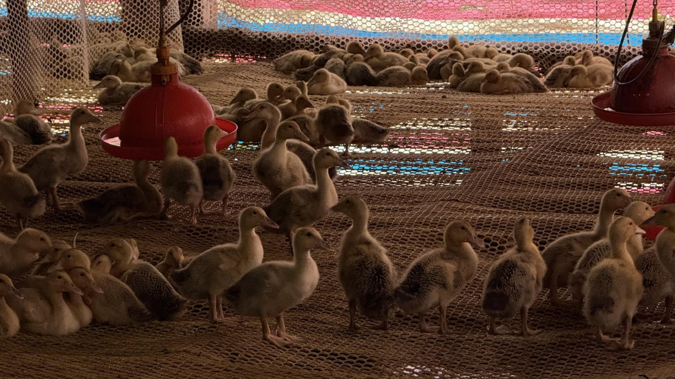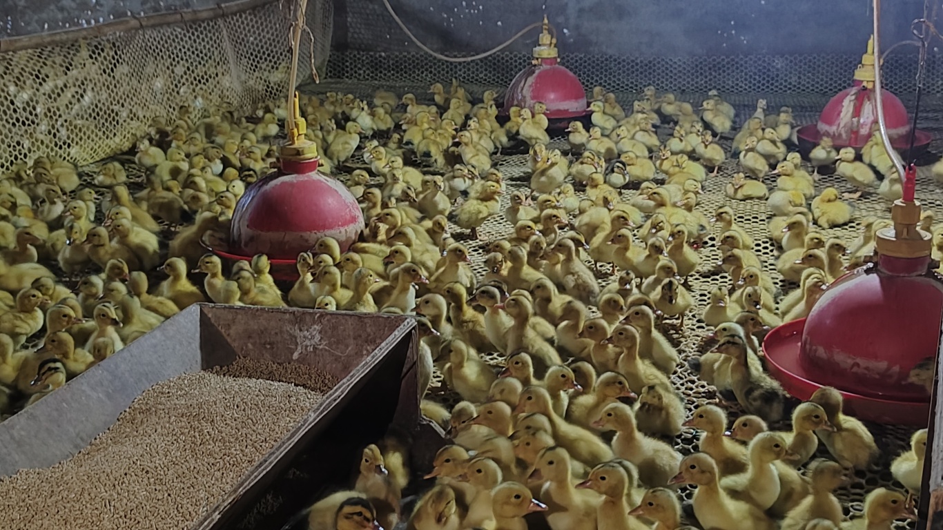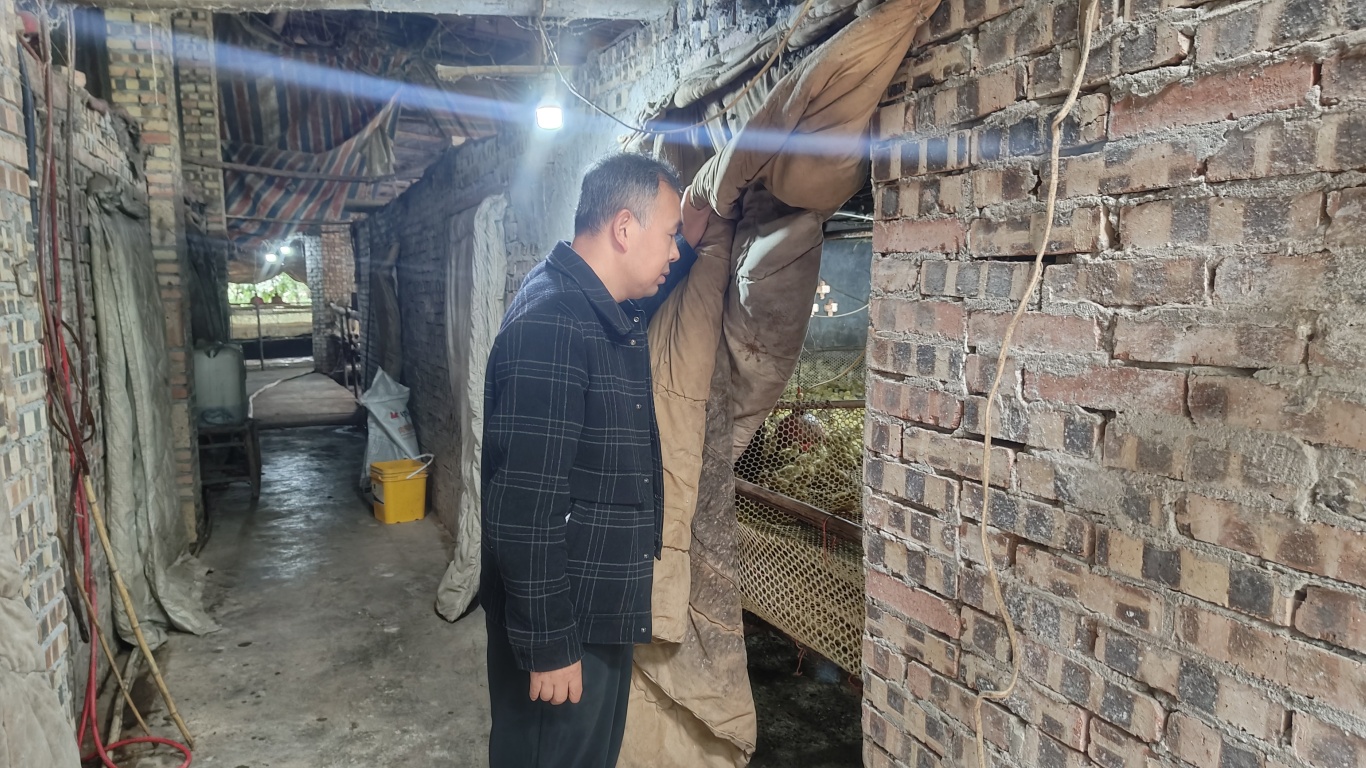 近日,记者来到蓬溪县川蜀种植专业合作社肉鸭养殖基地,唐果正在观察鸭苗的生长状态。