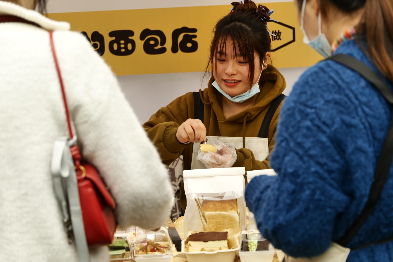 据悉,“青春主理·共焕遂宁”周末市集活动旨在进一步激发青年活力,推动城市发展,鼓励青年创业就业。在创意食品区,成都锦城学院遂宁籍大三学生杨峻昊忙个不停,目前,杨峻昊在遂宁经营的面包房已扩展至5家。