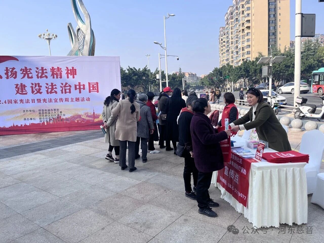 为弘扬宪法精神、增强全民法治观念,近日,慈音街道办事处结合第十二个“国家宪法日”暨第六个“宪法宣传周”走进万达广场,开展以“弘扬宪法精神,建设法治中国”为主题的宪法宣传活动。将法治课堂搬进商圈,推动宪法知识融入群众生活,实现普法宣传“零距离”。