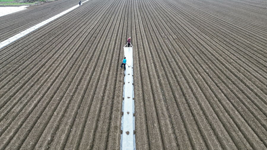 11月7日上午,记者走进唐家乡西堰村,上千亩平整的蔬菜种植基地里,船山区胜强蔬菜种植家庭农场的负责人余强正组织村民抢抓墒情,播种萝卜、覆盖地膜。村民们三人一组,分工协作,勾勒出一幅生动的“秋耕农忙图”。据了解,胜强蔬菜种植家庭农场蔬菜种植总面积达1200余亩,其中商品萝卜占500余亩,产品主要销往成都、重庆等地的批发市场和商超。