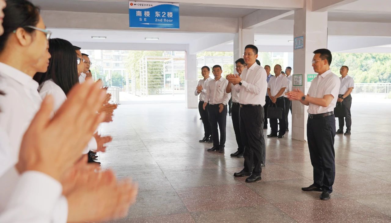 初夏时节,校园内学习氛围浓厚,宣传栏上学校的教育教学成果展示与励志标语格外醒目。在射洪中学、绿然学校,谭晓政、王能同志一行走进高三教师中间,与他们一一握手,详细了解有关备考工作、迎考状态及后勤保障等工作情况,向大家送上关怀和问候,叮嘱他们注意身体健康、合理安排作息。