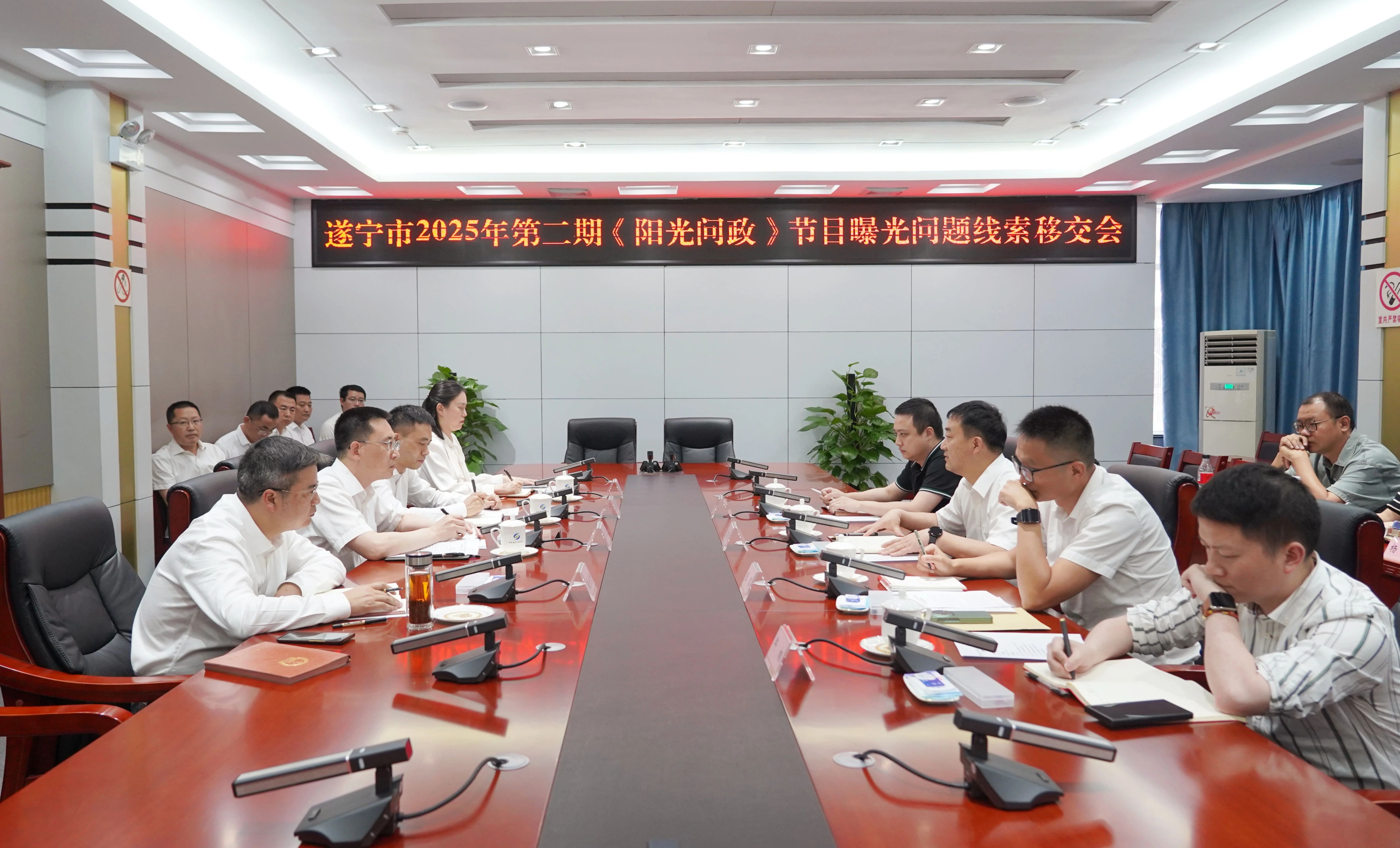 5月8日,遂宁市2025年第二期《阳光问政》节目曝光问题线索移交会召开。遂宁市纪委常务副书记、市监委副主任卢启志,射洪市委副书记、市长王能出席会议。